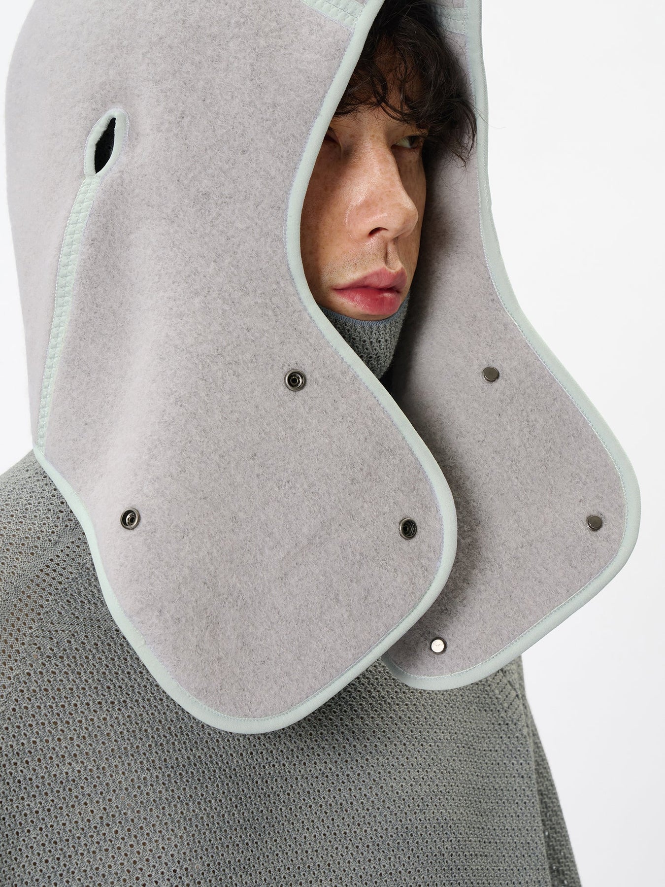 Goldwin 0’s FW25 collection fuses warmth with functional design. A hood made from soft, warm wool fleece—designed as a functional cold-weather accessory to protect from the neck up. Defined by its unique brushed texture and bold panel lines.