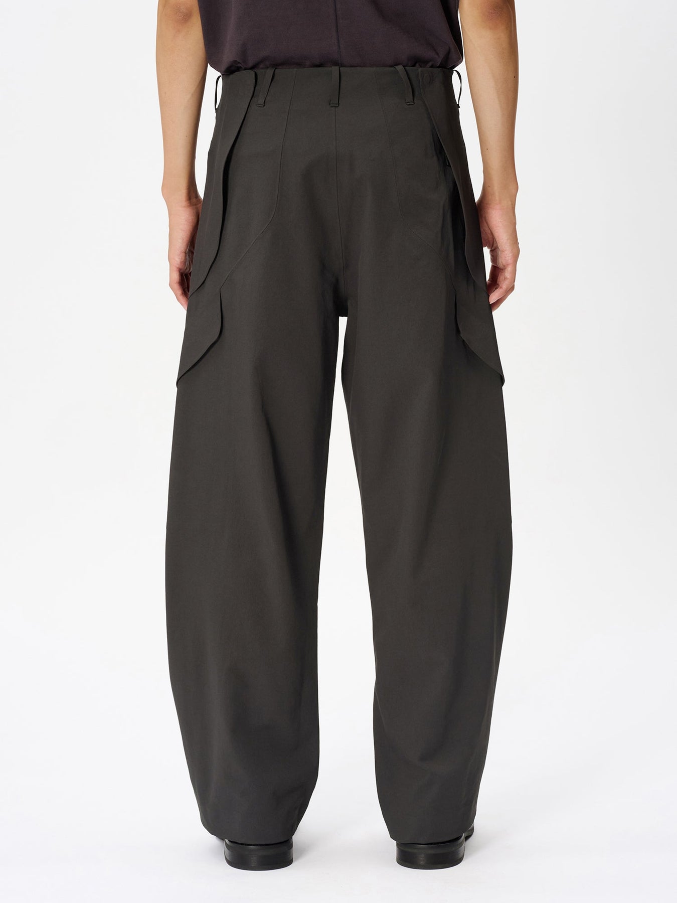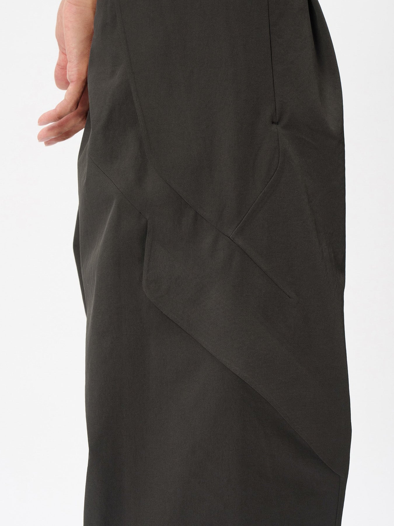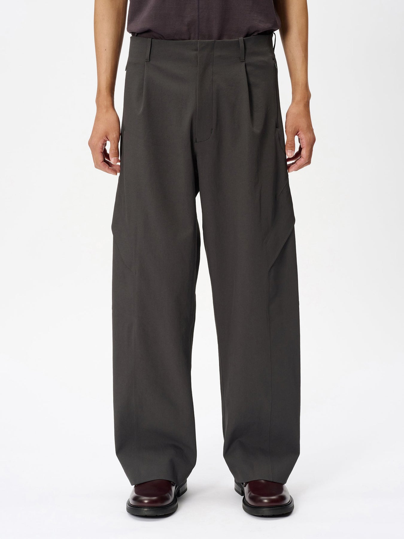 • Sleek waistline and wide-leg silhouette inspired by dress trousers