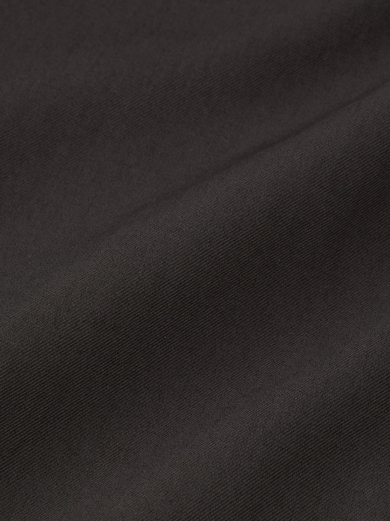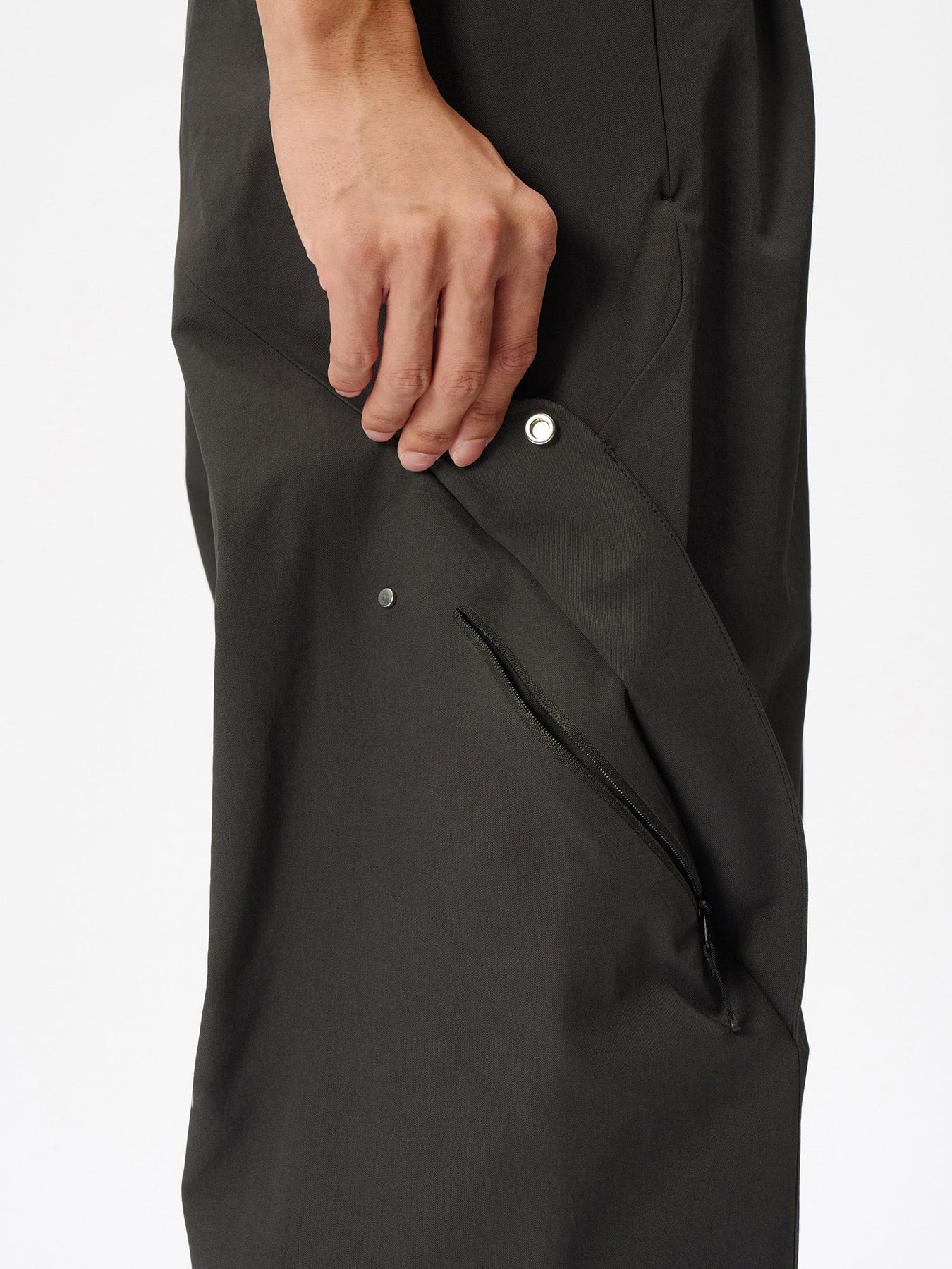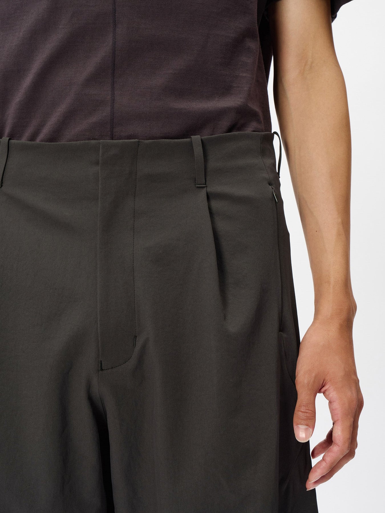 • Sleek waistline and wide-leg silhouette inspired by dress trousers