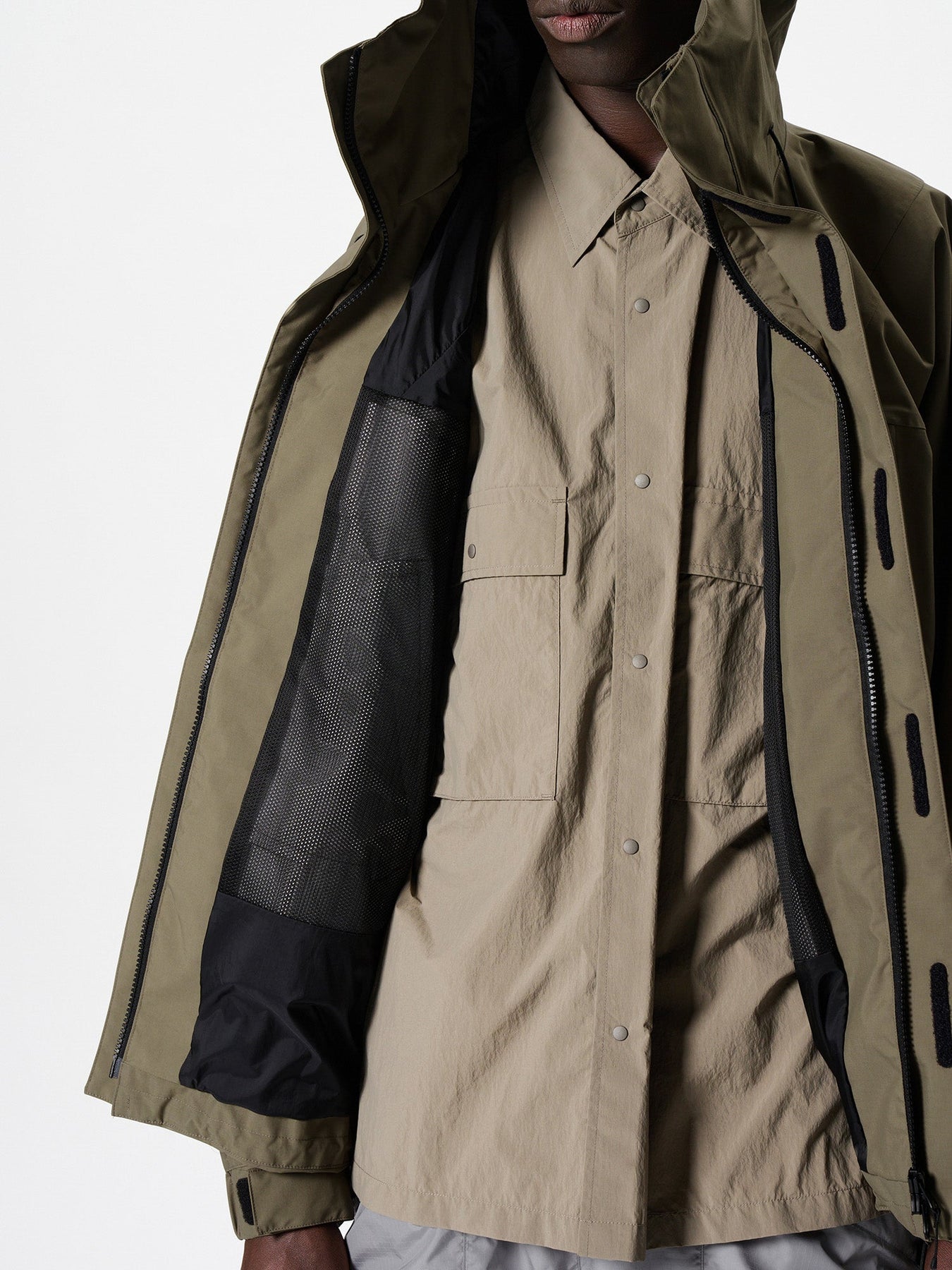 • A double flap placket for improved wind protection. And the front double slider zipper allows an easy microclimate adjustment depending on how its opened.