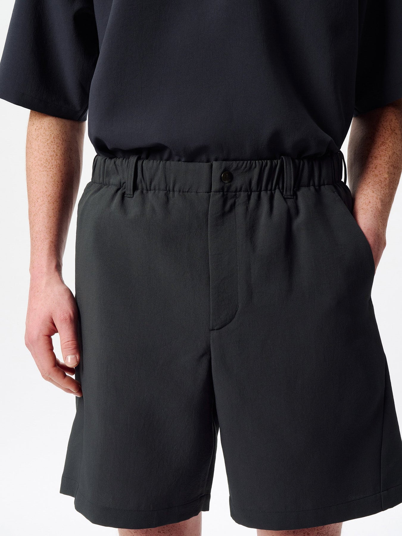 • Relaxed fit with an above-the-knee length for ease of movement and comfort.