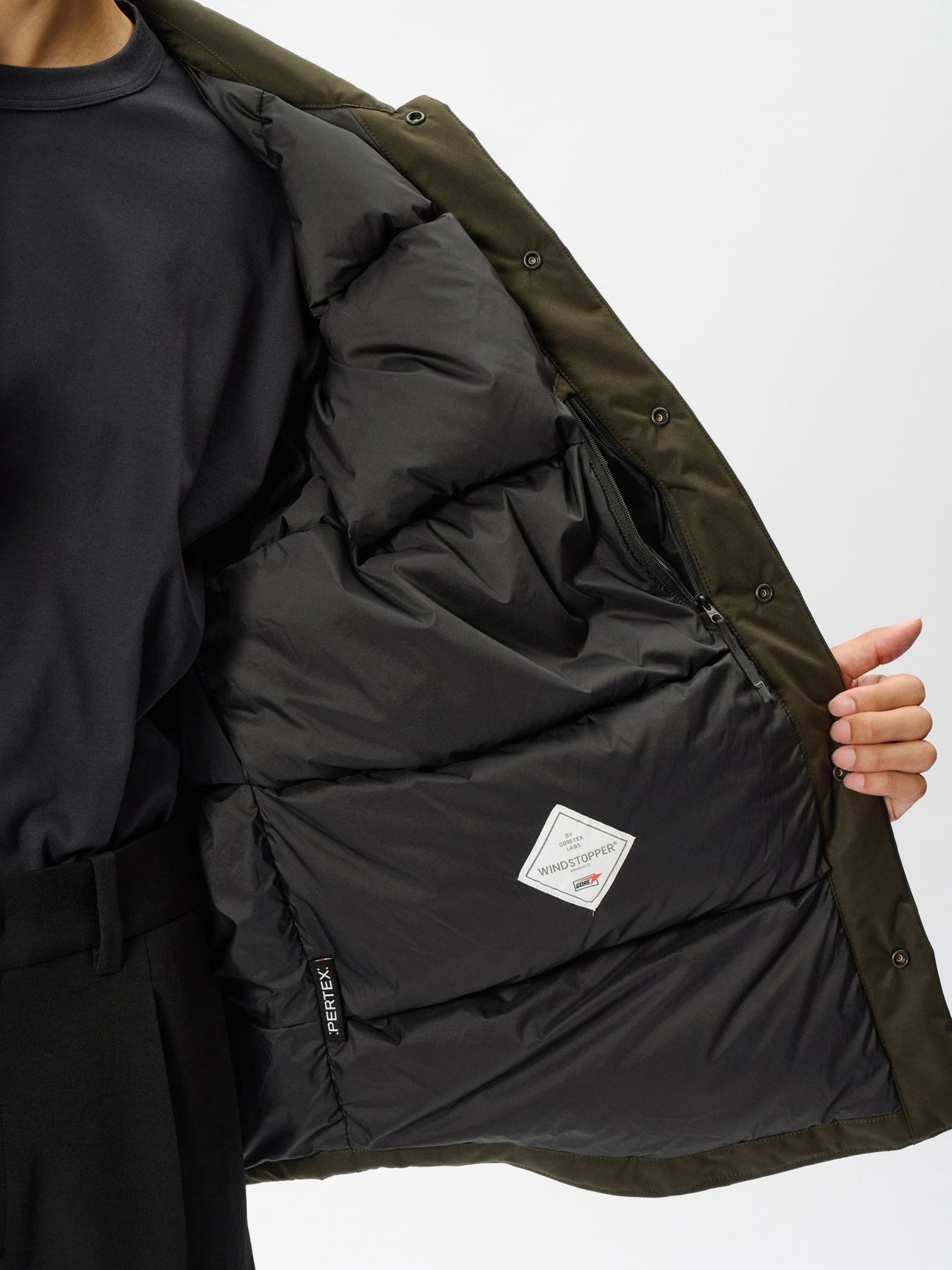 The lining features PERTEX QUANTUM, a lightweight and flexible fabric that ensures a gentle feel against the skin and effortless on/off comfort. A minimalist piece that conceals innovative performance and reliable warmth within its clean, modern design.
