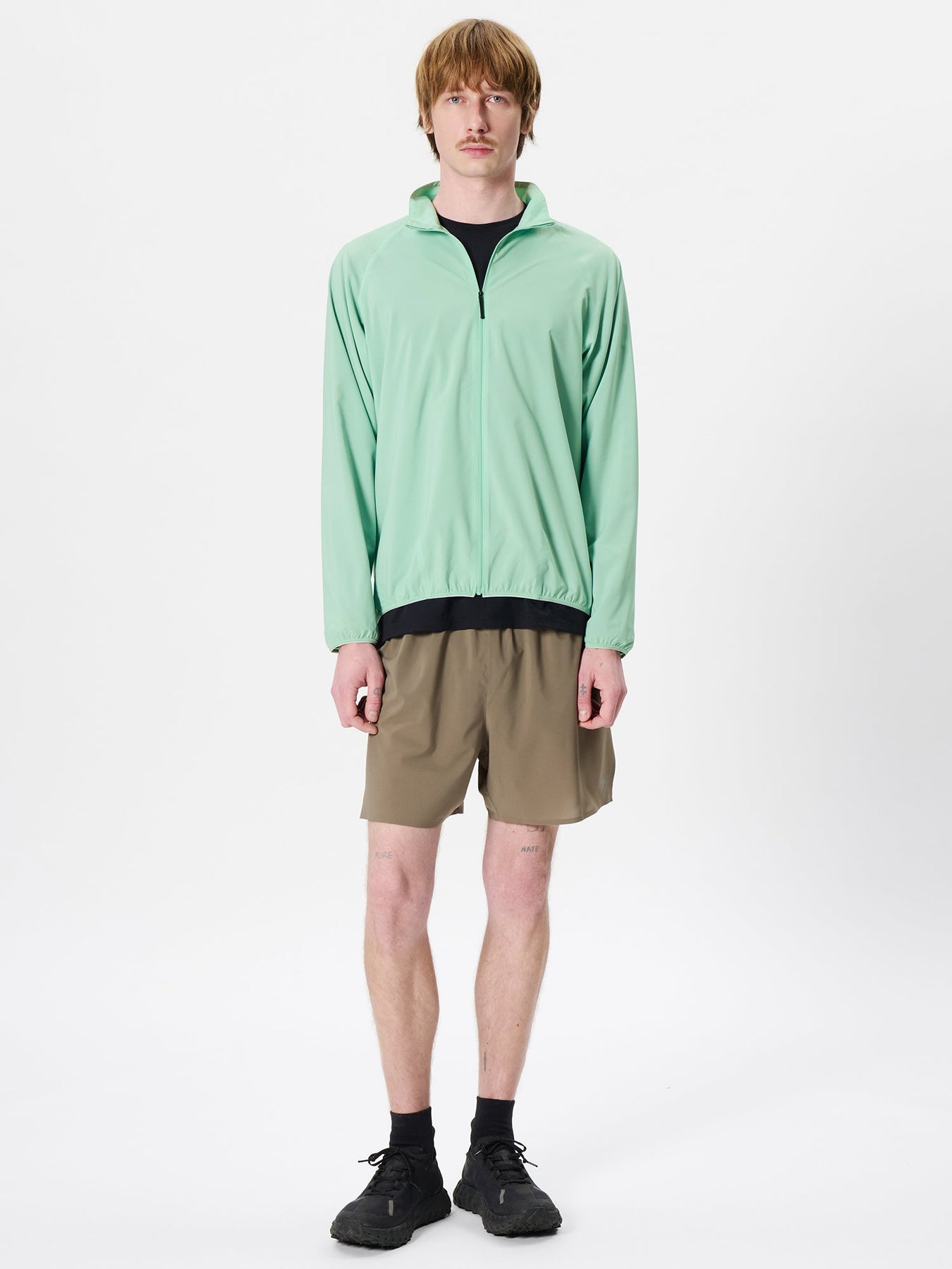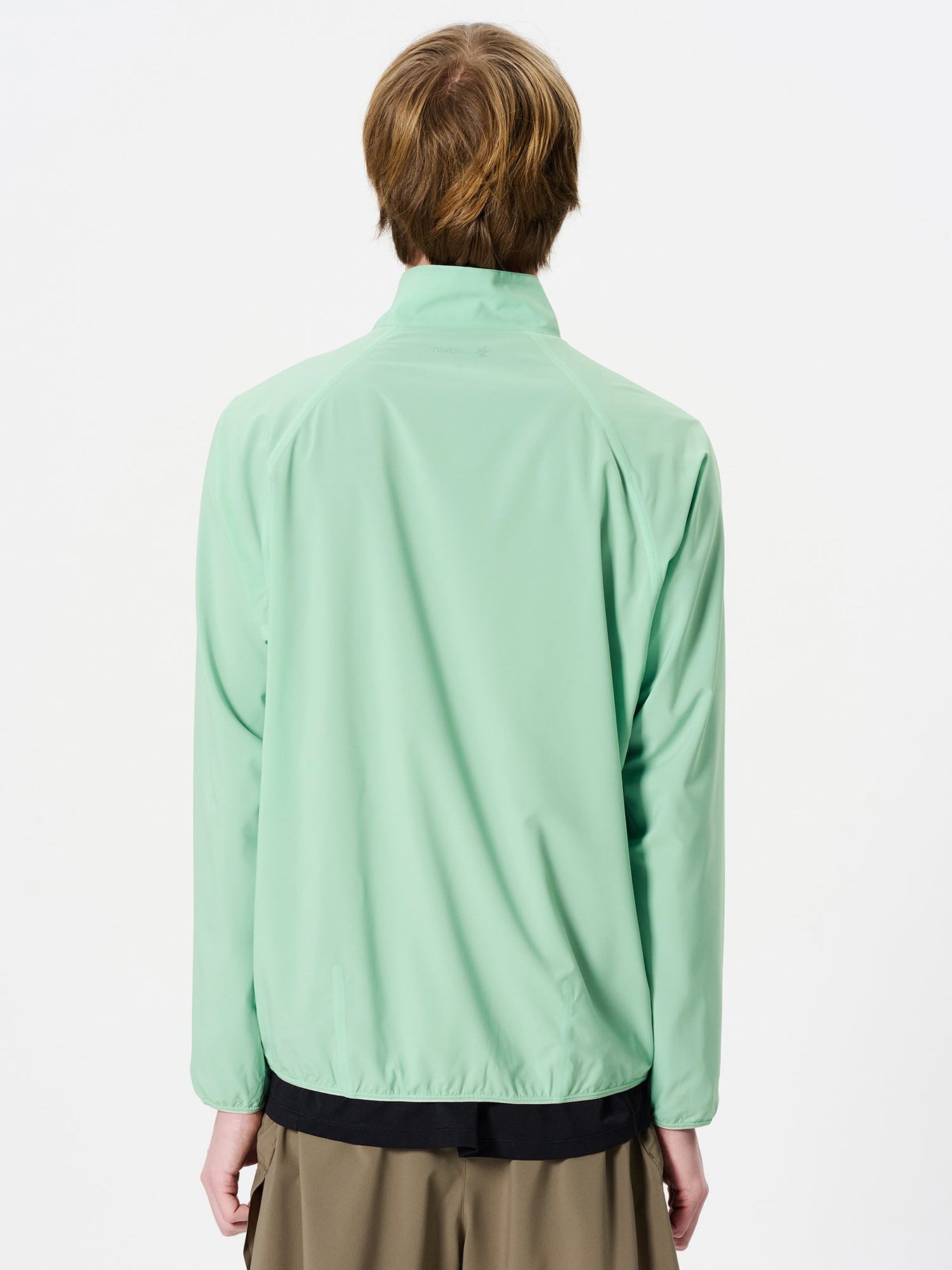 A wind shell jacket developed for lightness and comfort. Made of lightweight fabric that has a good balance of wind resistance and breathability. Designed with particular attention to the details for comfort to optimize the softness of the material. This item has a supple texture and moderate breathability, ideal for trekking or running.
