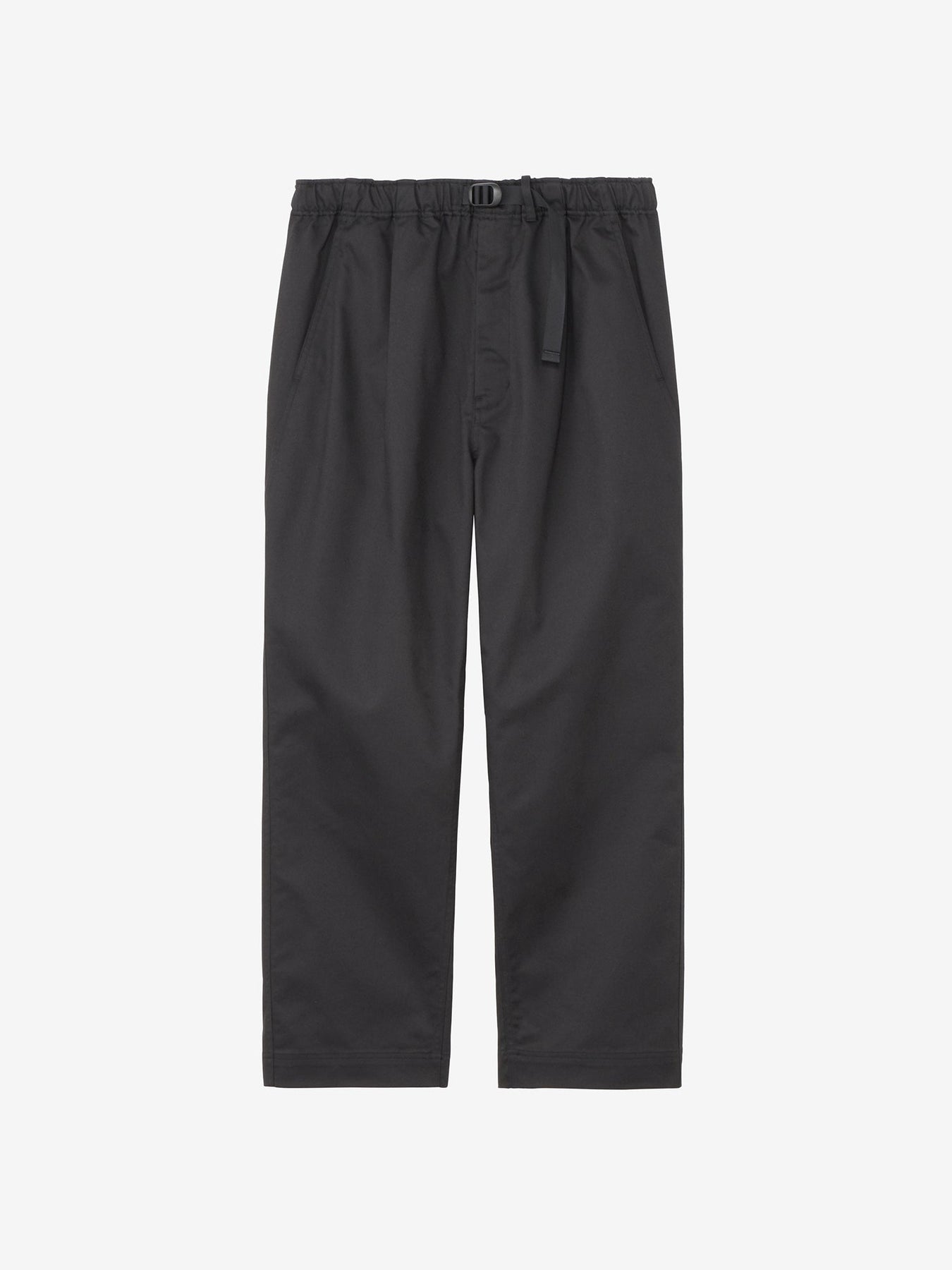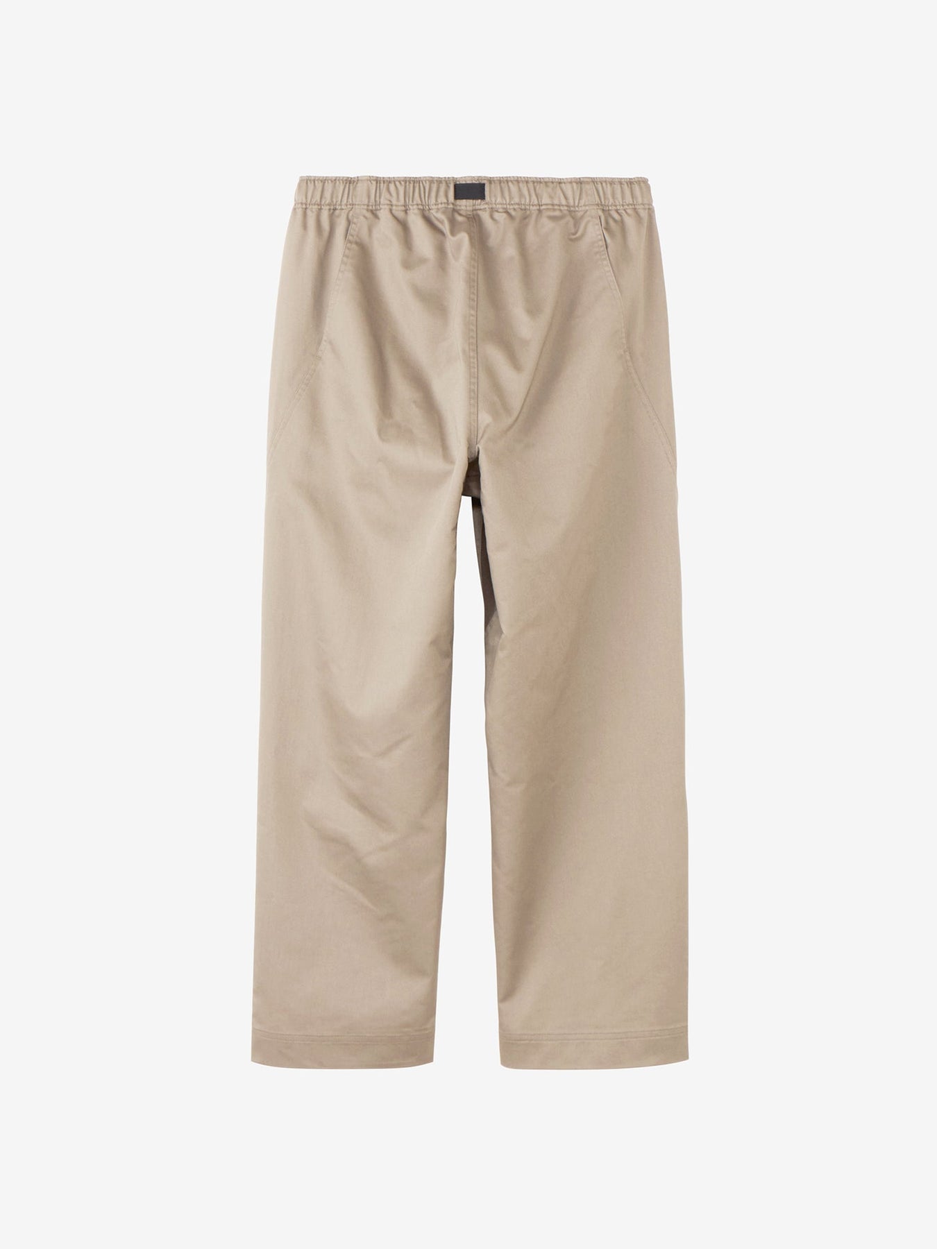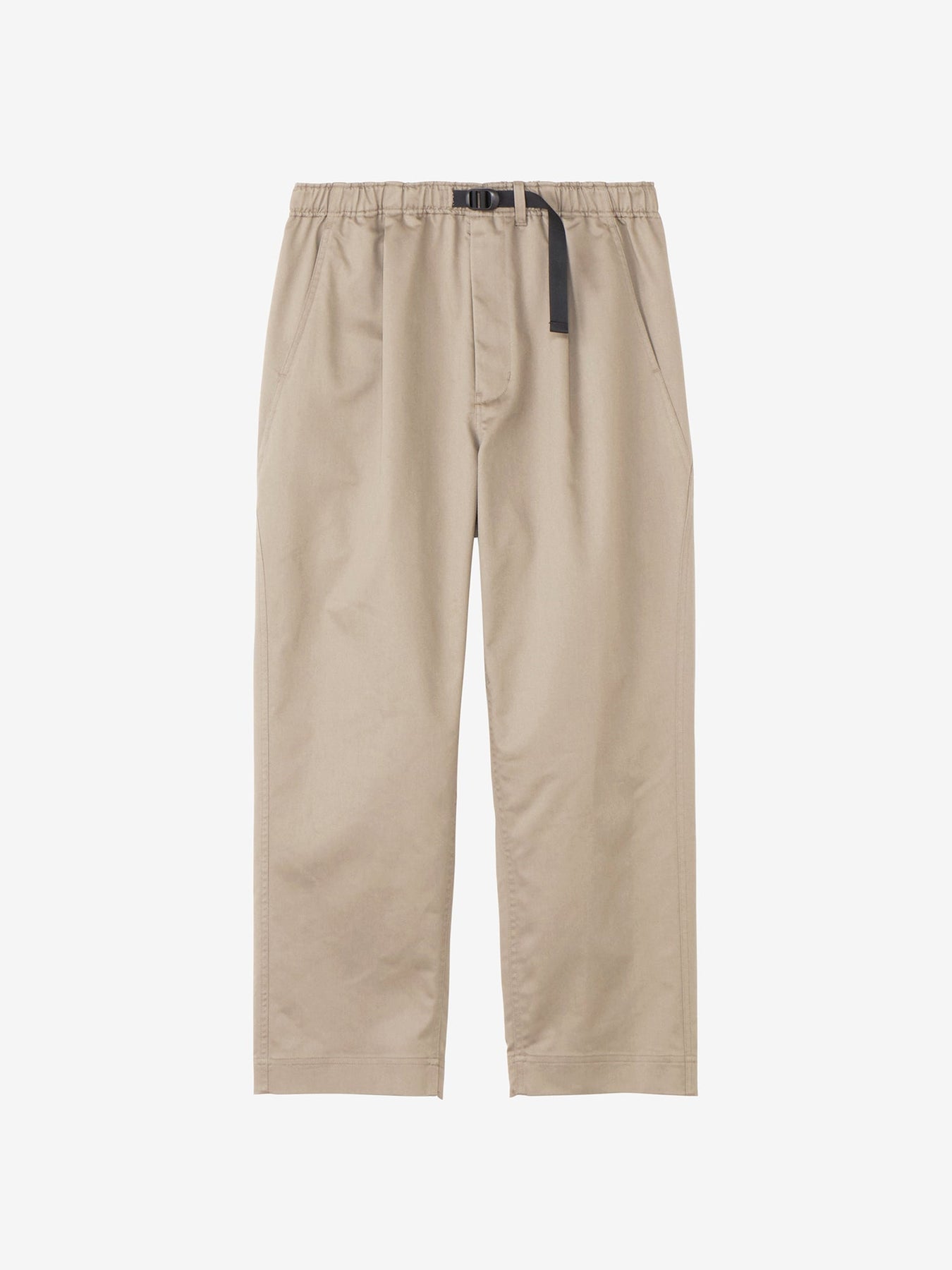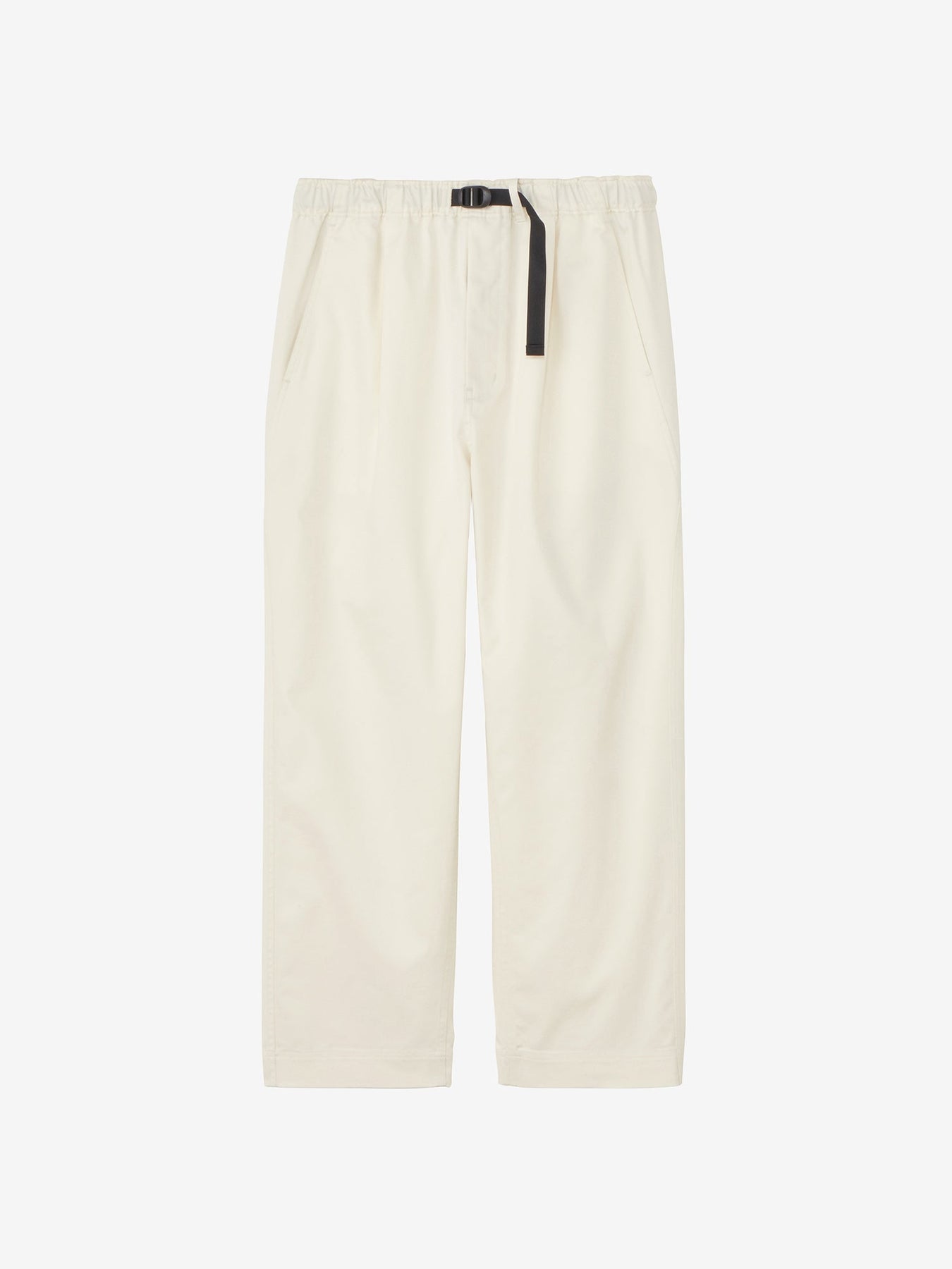 Pants made of twill fabric that blends cotton with natural texture, Solotex with excellent stretch and shape recovery, and recycled polyester derived from plastic bottles, providing cotton-twill like texture and comfortable stretch.