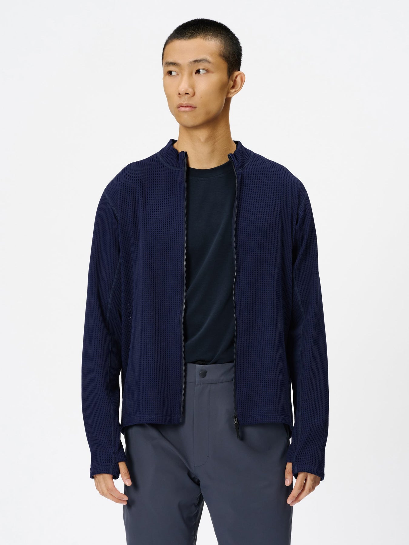 Midler jacket with excellent breathability and moderate heat retention. Made of Polartec Power Dry with double knit construction that quickly wicks and disperses sweat. The material has a mesh structure that provides breathability, allowing the garment to maintain a comfortable microenvironment.