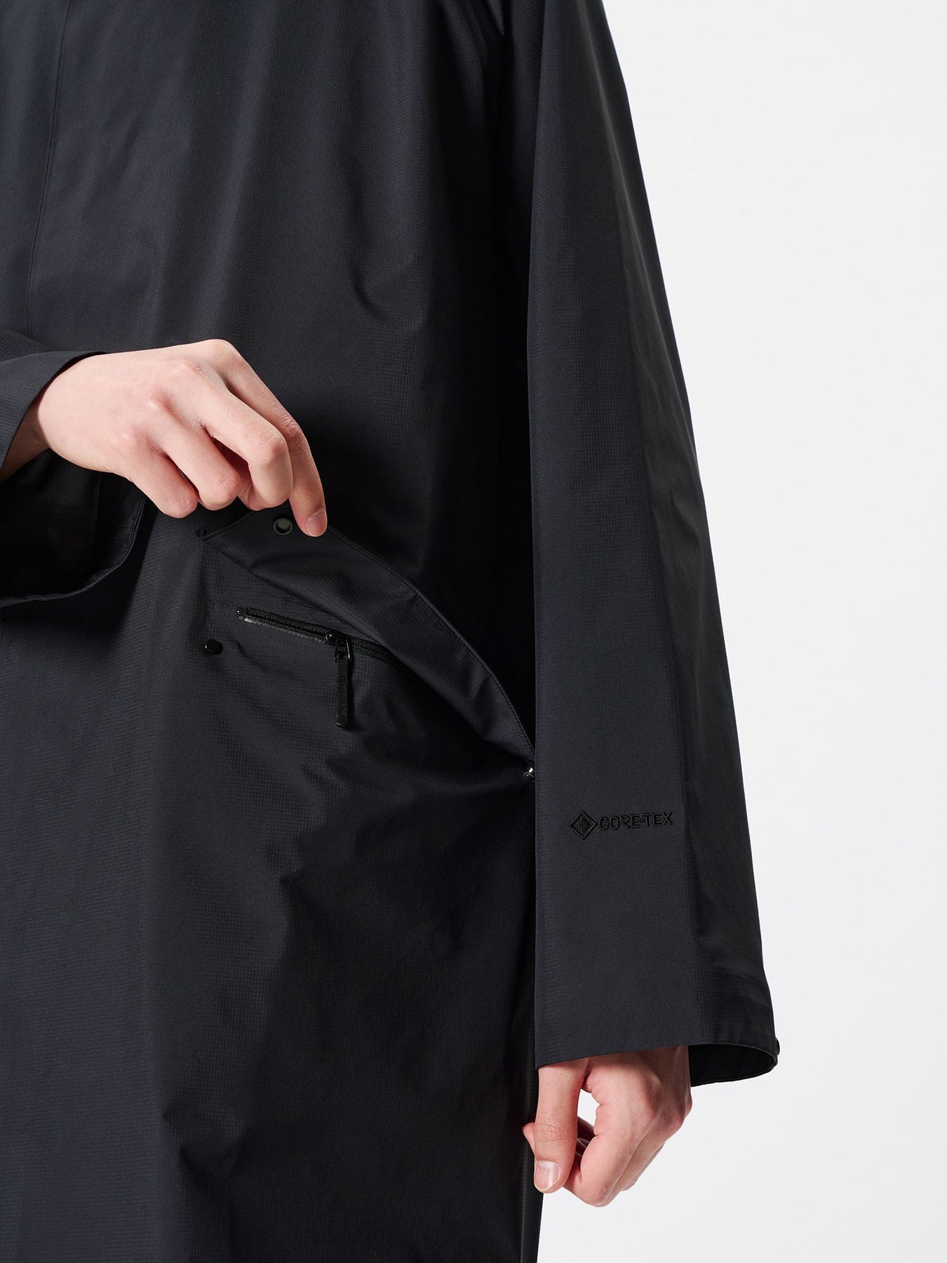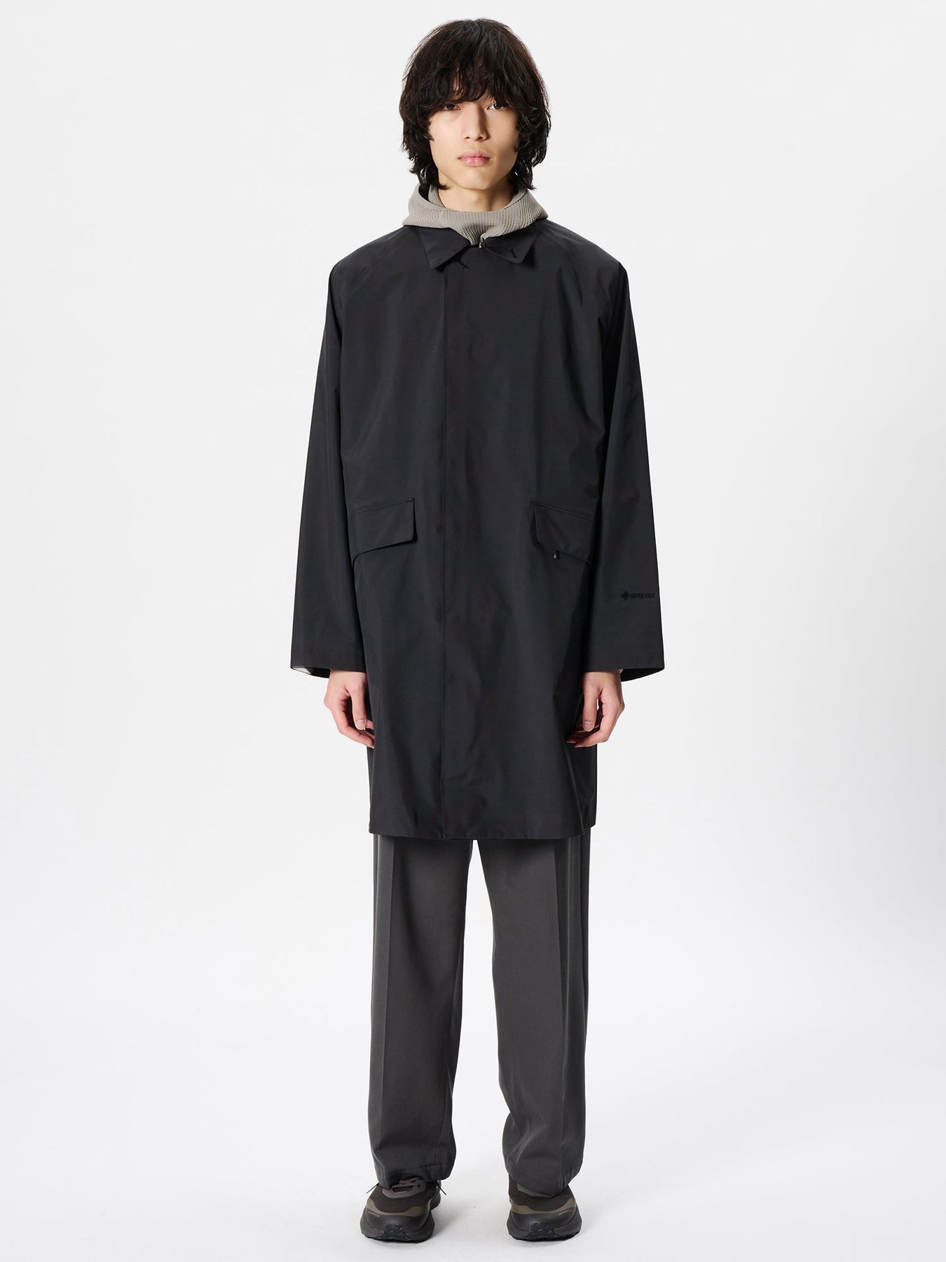 A waterproof coat made of GORE-TEX® products with excellent waterproof and moisture-permeable properties. It has a relaxed fit and a slightly shorter length to create a well-balanced silhouette that looks light and perfect for a casual style.