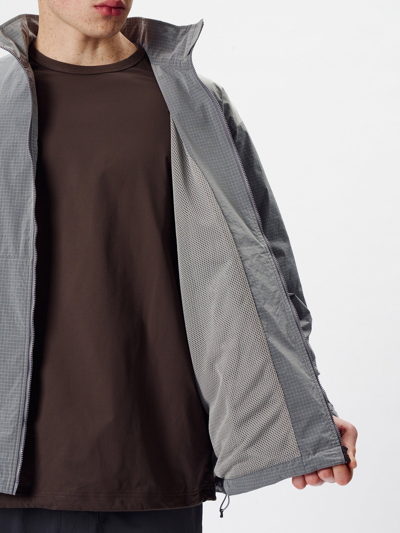 A wind jacket made with Goldwin’s original fabric, featuring a refined and understated texture. Designed with mesh lining for comfortable wear across multiple seasons.