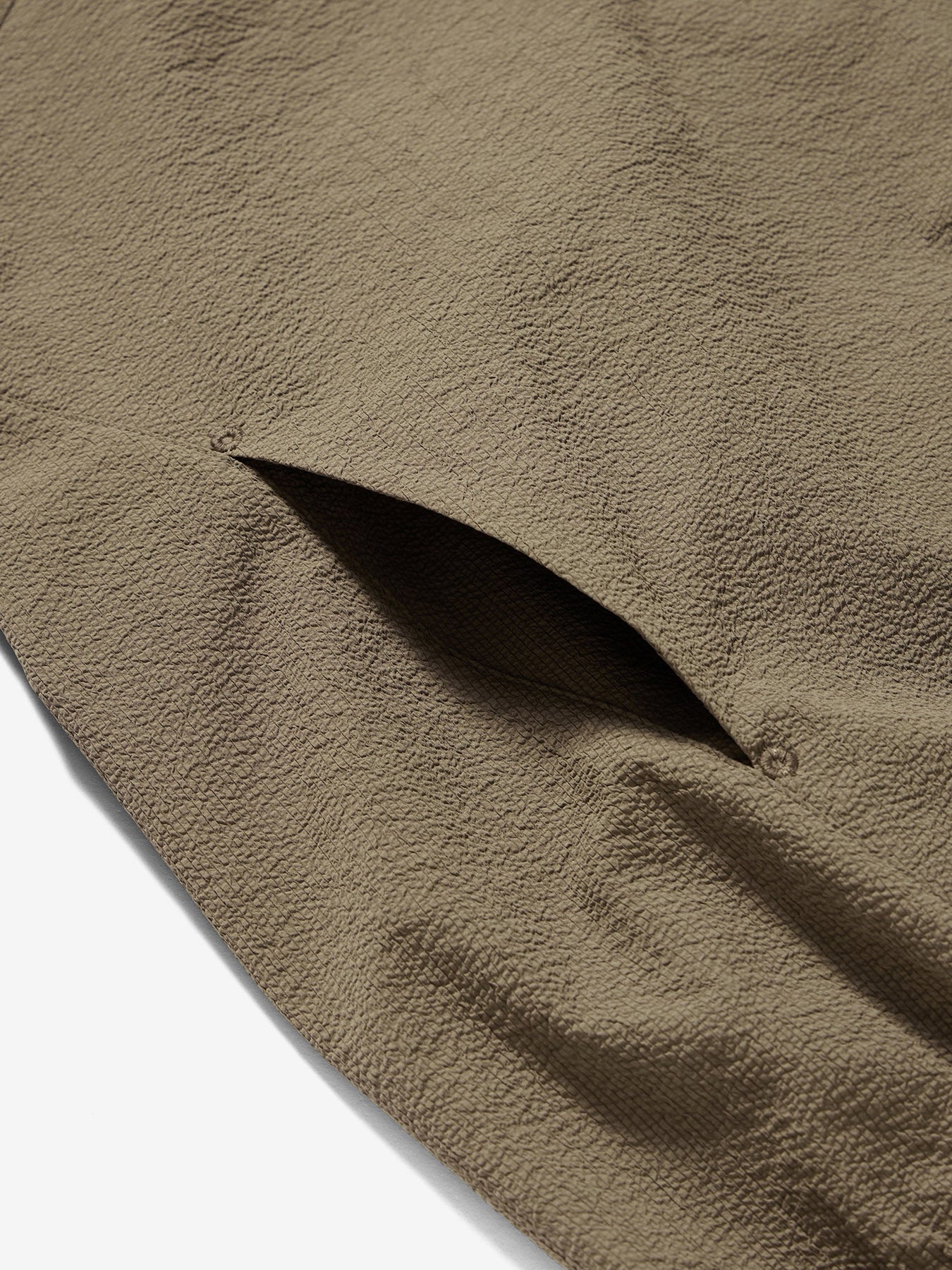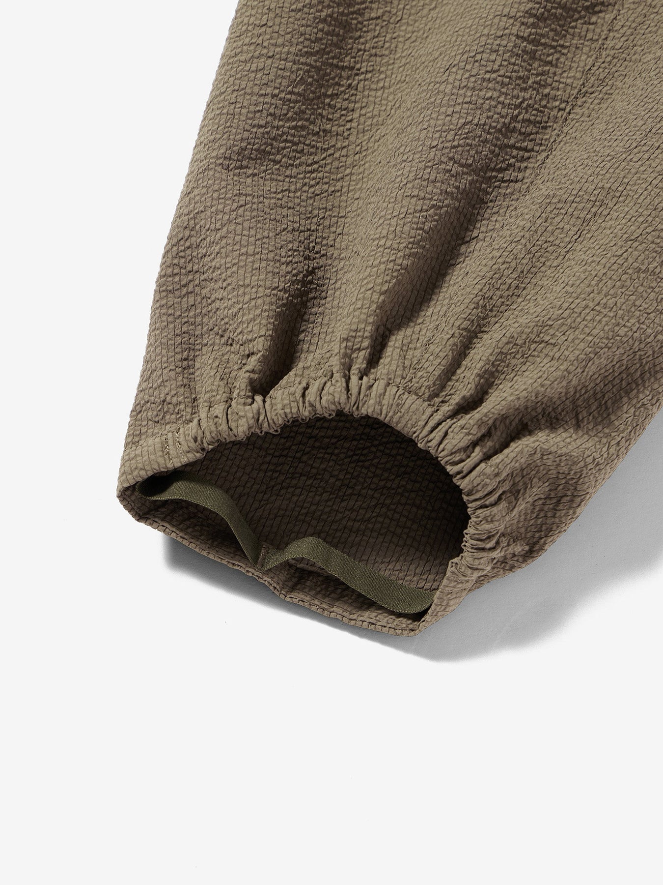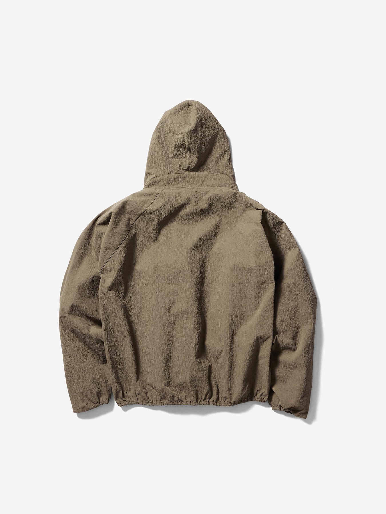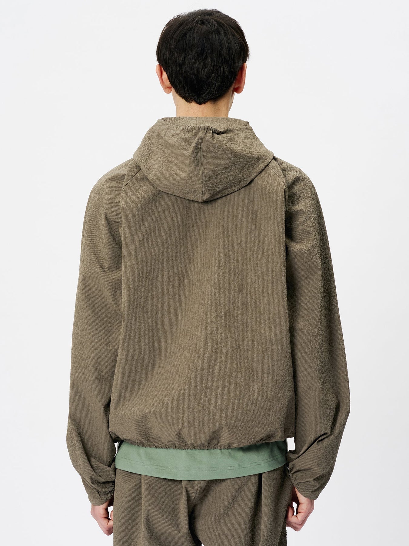 This anorak is made from a fabric featuring a finely rippled, wave-like texture. It offers moisture-wicking and quick-drying performance and is designed with built-in UV protection, tested according to AS/NZS 4399, the Australian/New Zealand standard for sun protective clothing, suitable for long hours outdoors. The relaxed silhouette allows air to circulate, while the textured fabric minimizes contact with the skin, ensuring comfort even in strong sunlight. A matching fabric stuff sack is included for compact storage of the garment.